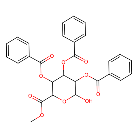 - 分子结构:葡萄糖醛酸甲酯2,3,4-三苯甲酸酯是由葡萄糖醛酸甲酯的2、3、4位羟基被苯甲酸酯化得到的衍生物。